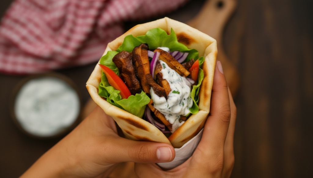 Une alternative végétarienne pleine de caractère : les pleurotes rôtis prennent une texture dorée et croustillante, parfaite pour un kebab maison gourmand.
